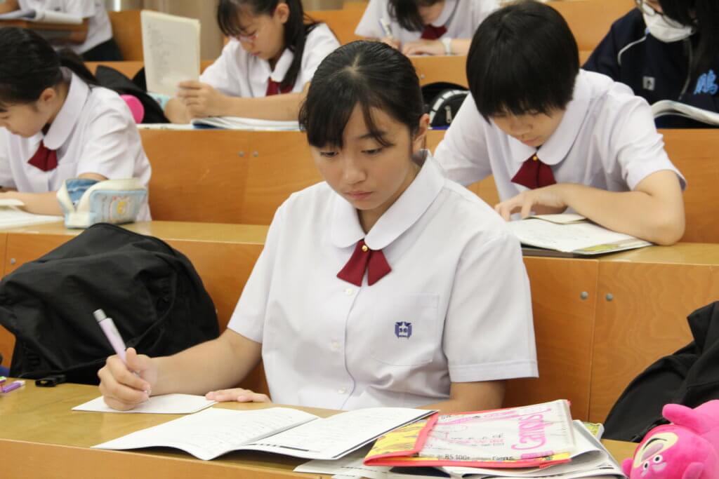 昼食後、J3生は衛星講座を受講します。普段の授業とは違う形のため、新鮮さを感じながら学習をすることができたようです。