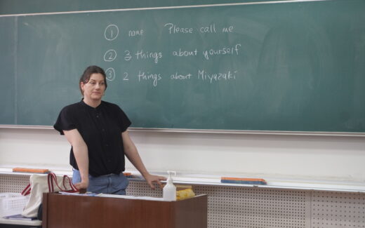 J1生は宿泊研修に行っていますが、在校生は通常授業が展開されています。3つのクラスに分けて行われる英会話の授業では一人一人が発言をする機会が多くあります。 今日は、先生の自己紹介や生徒たちの自己紹介が行われていました。