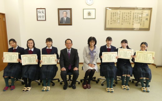 昨日、安井息軒顕彰書道展の表彰式が、安井息軒記念館(清武町)にて行われました。未就学児、小学生、中学生、高校生、一般のそれぞれの部に、合計で870点ほどの応募があったようですが、それに本校から13名の皆さんが入賞しました