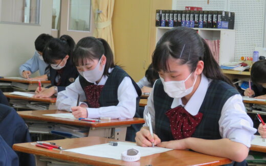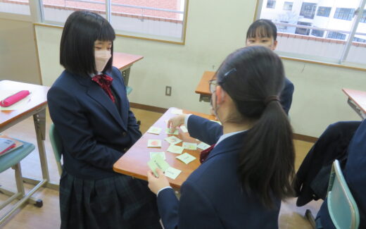 本日は、J1 の国語の授業【標準クラス】での百人一首の練習の様子です。鵬翔中学校では、国語の教材の1つとして百人一首を覚えることに取り組んでいます。定期考査にも出題され、年末(今年度は12月18日)には、生徒全員参加の「