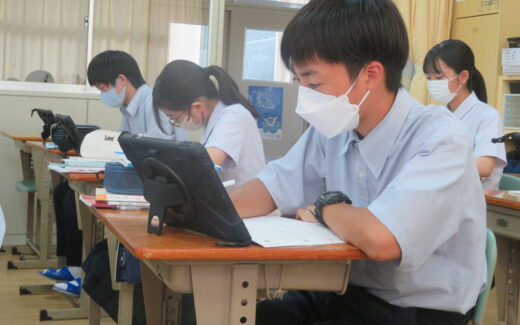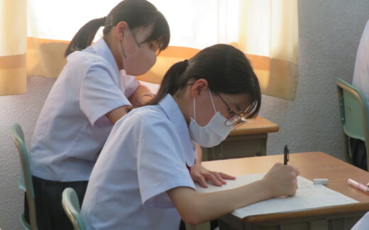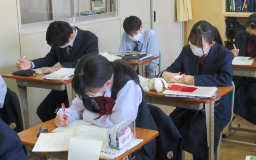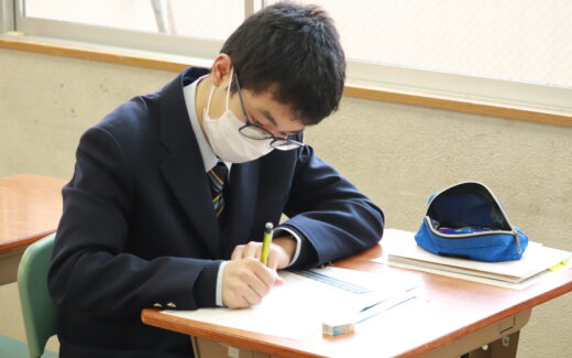 毎週月曜日の1限目は、LHRの時間となります。テスト1週間前ということで、テスト勉強をしていたり、総合探究を行っていたりなど、各クラスにてさまざまです。その中で、J2-Bでは、「立志式」に向けて、立志宣言に向けた作文を