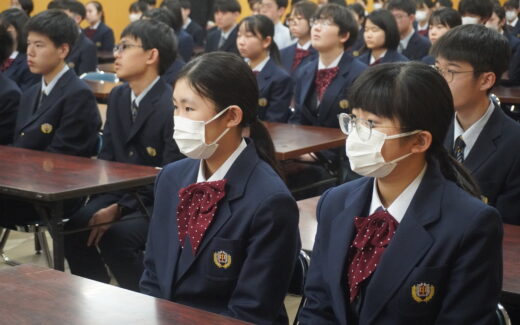 昨日は中学、高校、看護専攻科合同の始業式があり、令和8年度がスタートしました。その後の中学部集会では、吉田教頭、安田教務主任、宮﨑生徒指導主任の訓話を受けて、本校に集った初志を再確認するとともに、J2生は中学部の中堅と