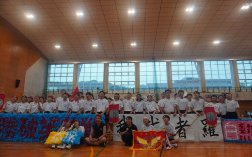 9月22日(日)に体育大会を行いました。当日はあいにくの天気で宮崎産業経営大学の体育館での実施となりました。 体育館中に響き渡る声援を送り、全力で体育大会に挑みました。この日まで各団、団長を中心にダンスの練習や応援の練