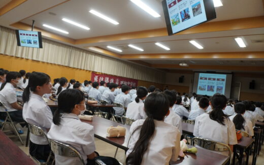 先日、J2・J3生を対象に出前講座を行いました。今回はMRT宮崎放送様と株式会社くちき様をお招きし、講話をしていただきました。 MRT宮崎放送報道局次長の碓井晋作様からニュース番組ができるまでの流れなど様々なことをお話