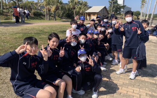 明日のマラソン大会に向けて、J1生は最後の時間走に挑戦していました。この写真は、10分間走の様子です。 明日のマラソン大会は、青島トロピカルロードで行います。女子のスタートは、10時10分。男子スタートが、10時35