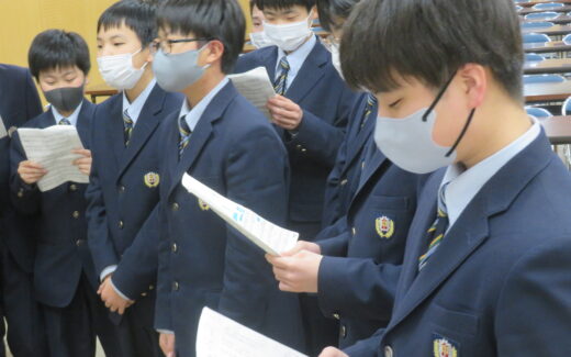 修了式に向けた合唱の練習が各学年始まっています。今日はJ1生が練習を行いました。男女別れてパート練習を行いました。河野先生から発声の仕方など指導してもらいながら練習に励んでいます。 先輩方にとって良い思い出となる修了証