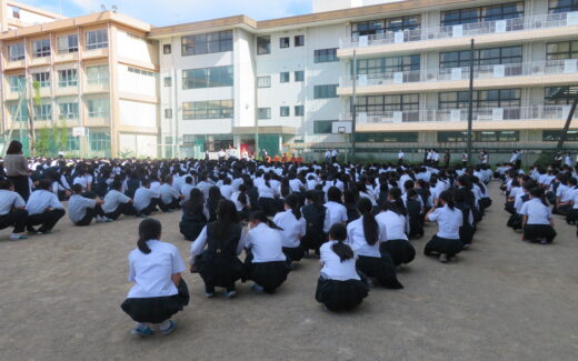 10月4日(水)に行われた生徒会役員立候補者演説および選挙の結果を受け、新しい生徒会役員が決定し、生徒会役員新旧交代辞令交付式が行われました。 旧生徒会役員のみなさんへ感謝状が授与されました。勉強と部活の両立の他に生徒