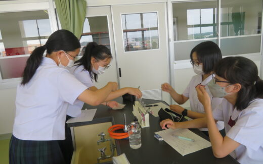 本日、J2-Aの理科の時間に理科室で実験を行いました。今日の実験は、塩酸、硫酸、アンモニア水、酢酸、石灰水、水酸化ナトリウム水溶液を用いて酸性とアルカリ性の性質を調べました。 BTB溶液とフェノールフタレイン溶液で色の