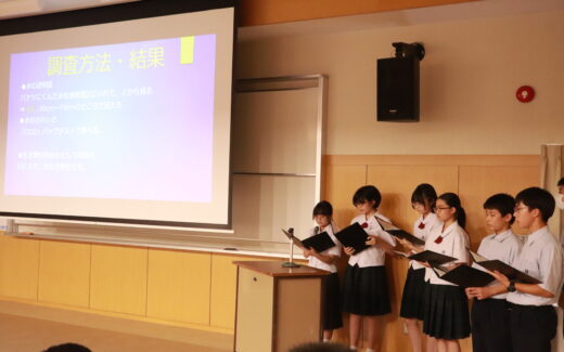 本日、文化発表会が行われました。今年の文化発表会テーマは、「挑」~高い壁にも立ち向かおう!~です。限られた時間の中で準備してきたものを全力で披露してくれました。 今日は、午後の様子を写真にて紹介します。 NIE発表