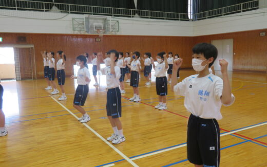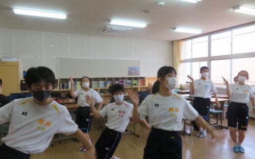 本日、体育大会の練習でソーラン節をしました!全校生徒でソーラン節を踊ります。まず、映像で踊りの細かい振付を確認しました。 初めは、動きを覚えるのに必死で、 腰を低く落として踊るので大変そうでしたが、練習を重ねていくたび